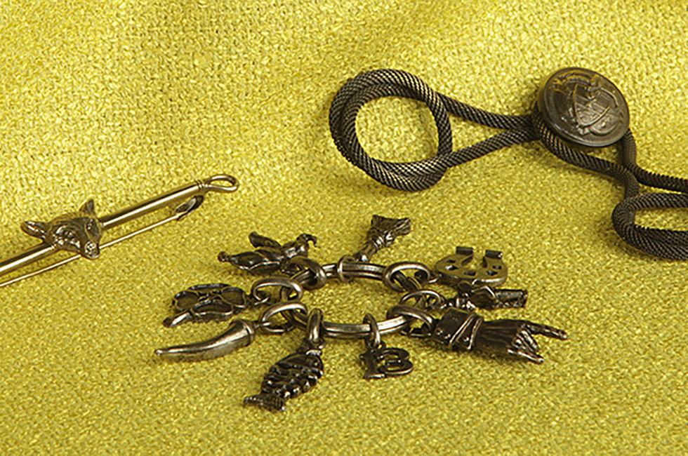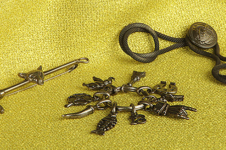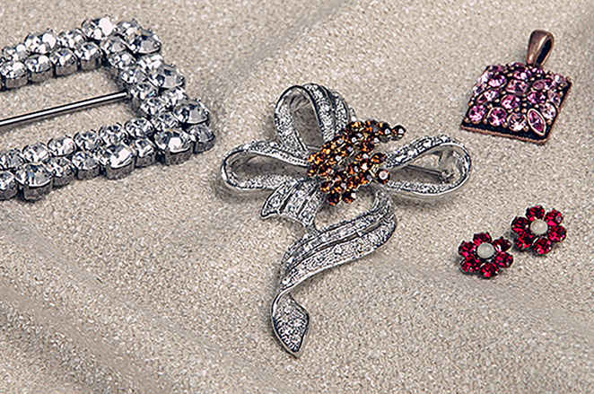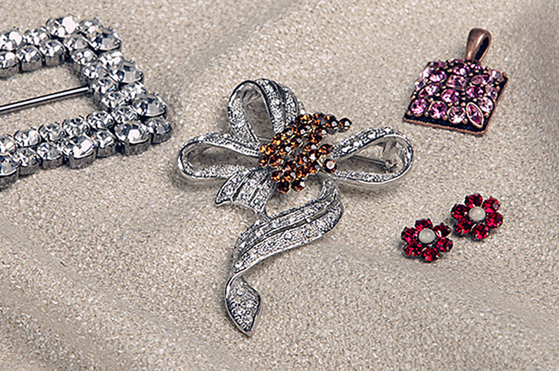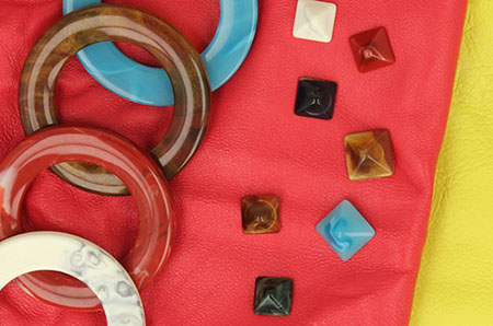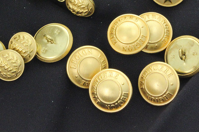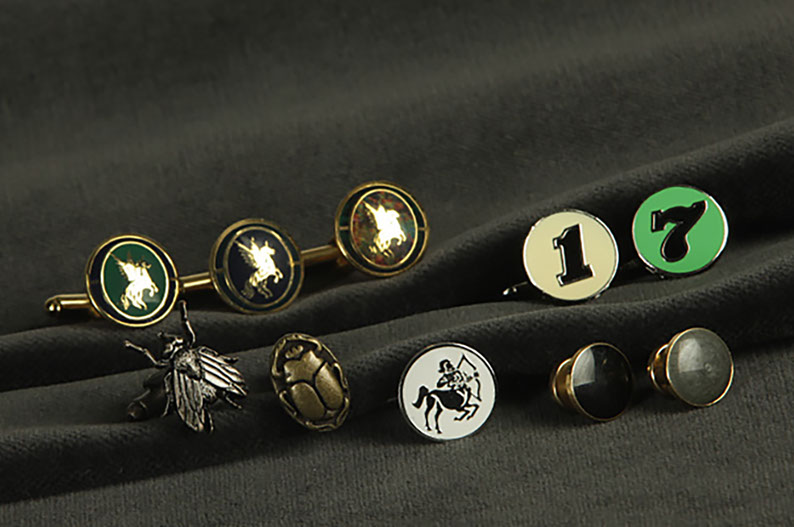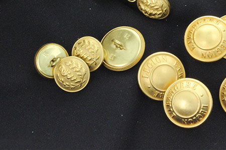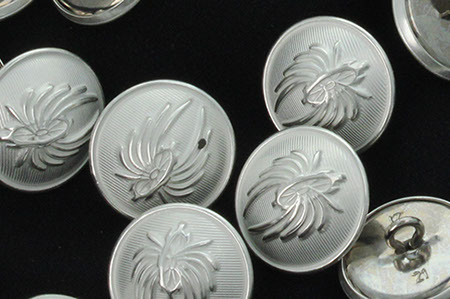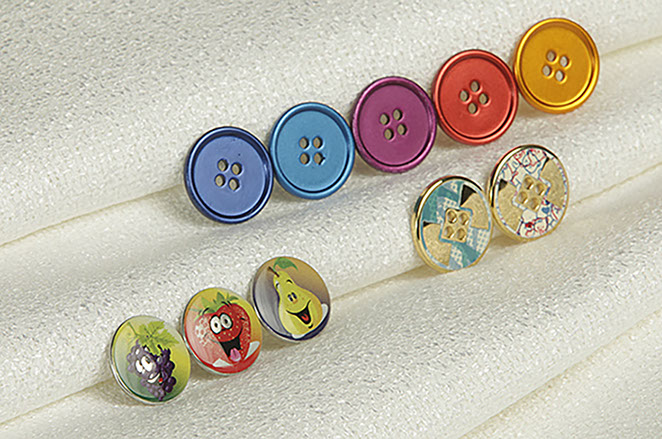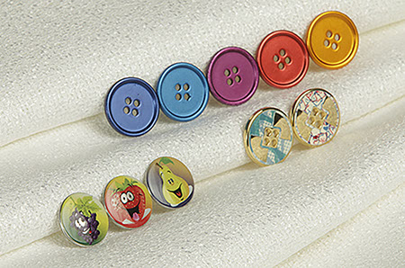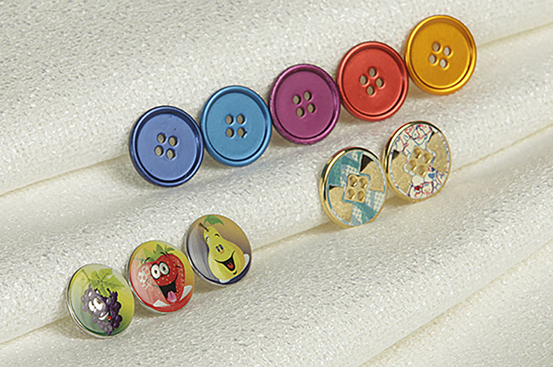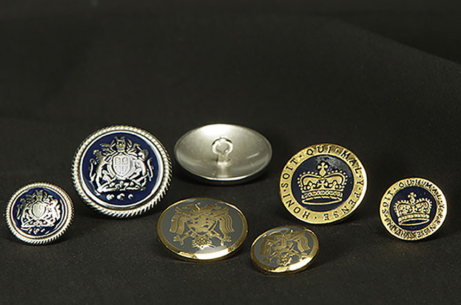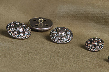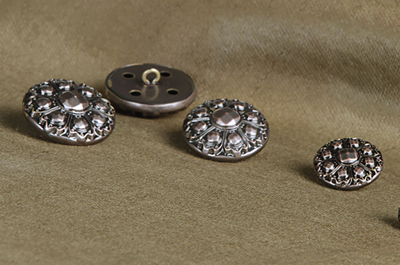Buttons enriched with enamels and strass or electroplated with precious metals.
