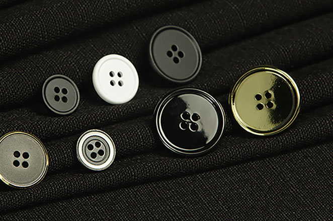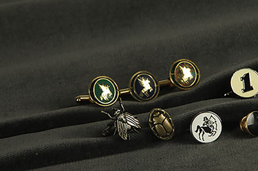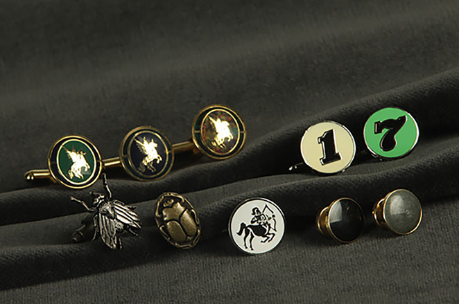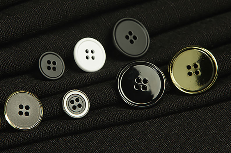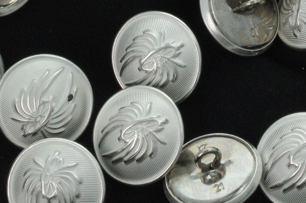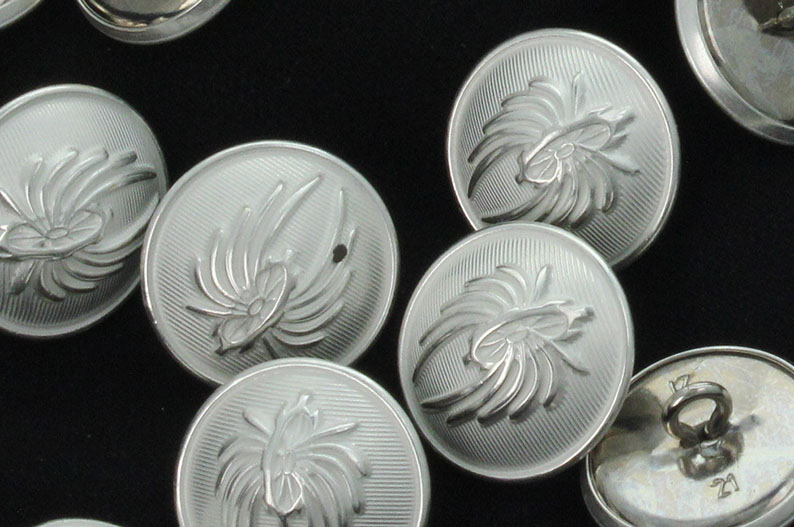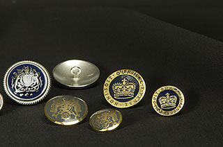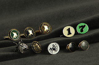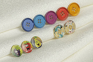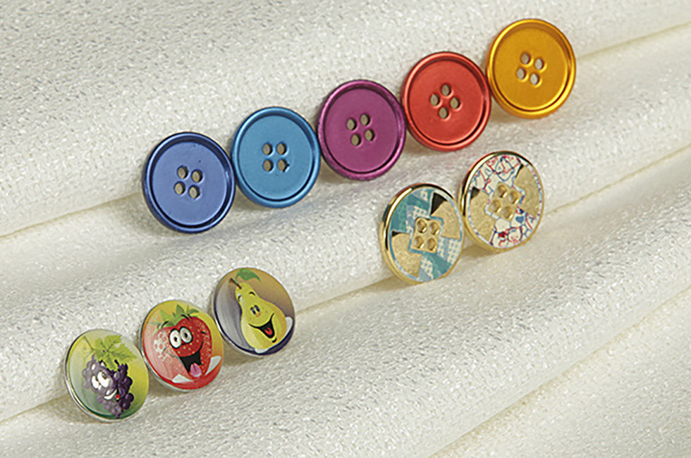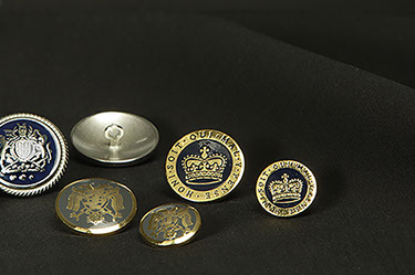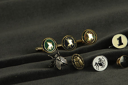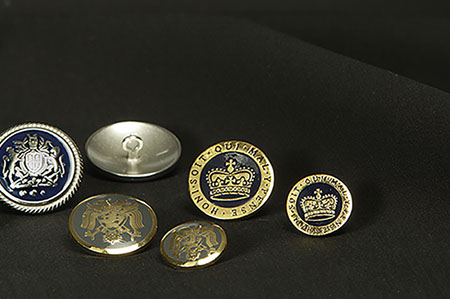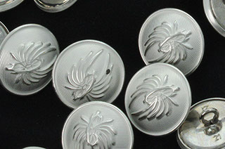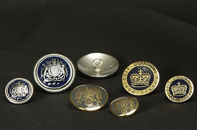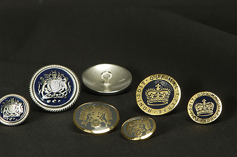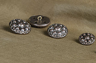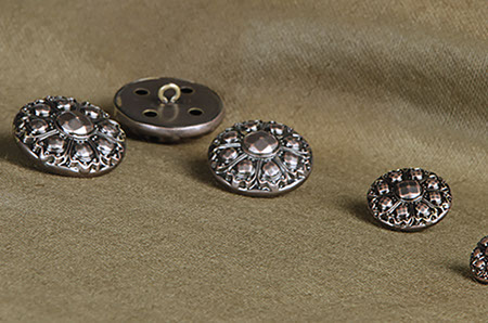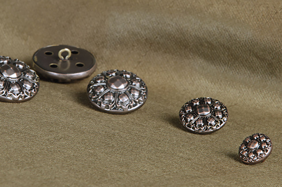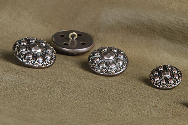 Buttons enriched with enamels and strass or electroplated with precious metals.