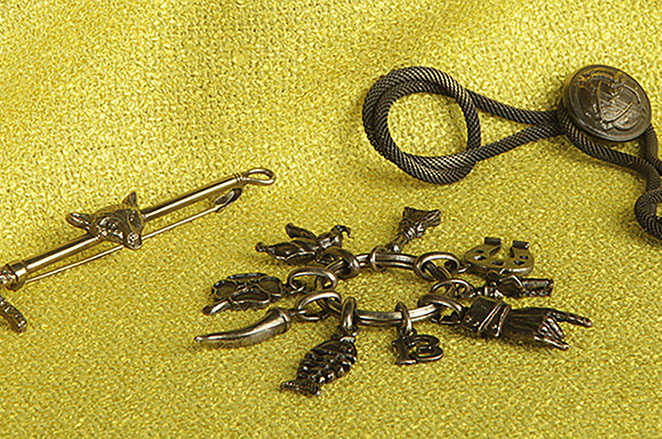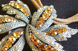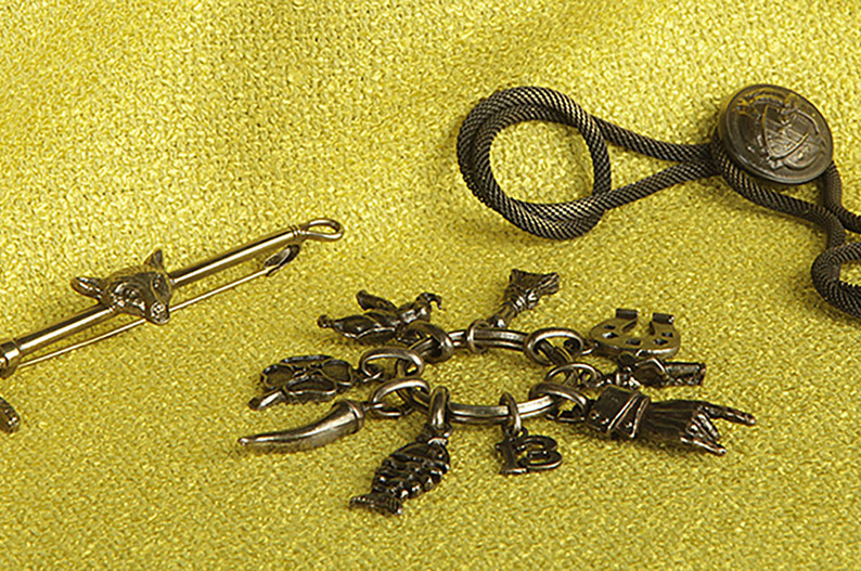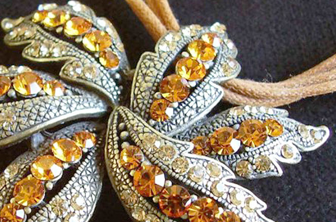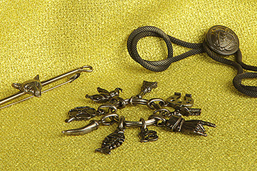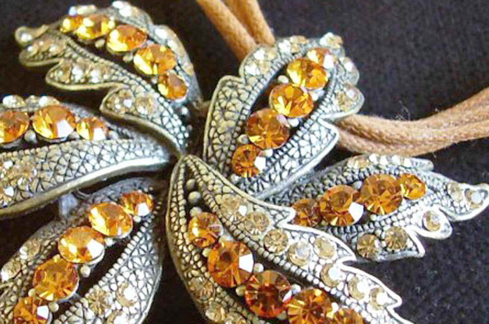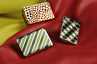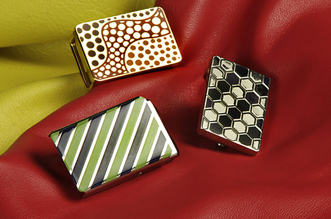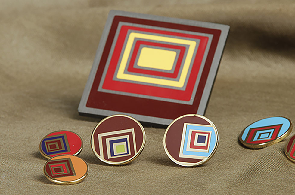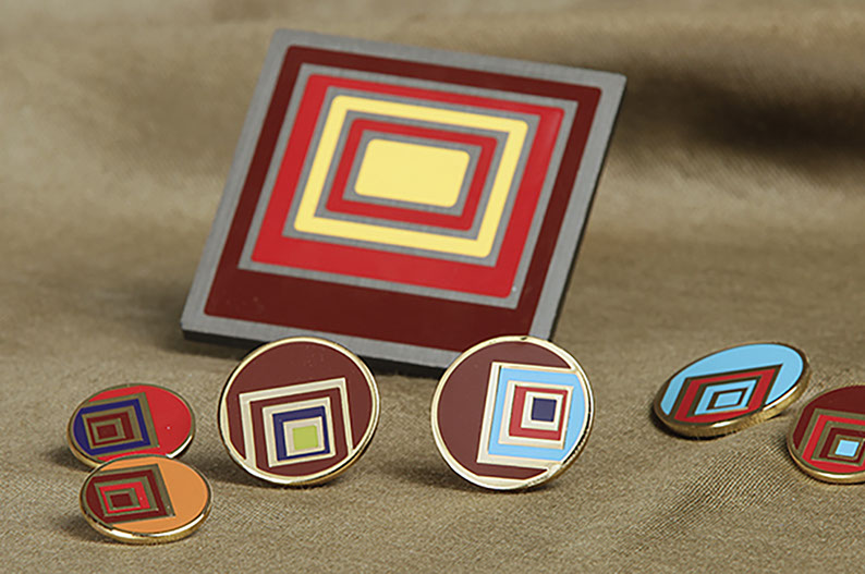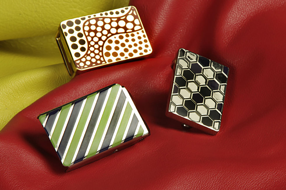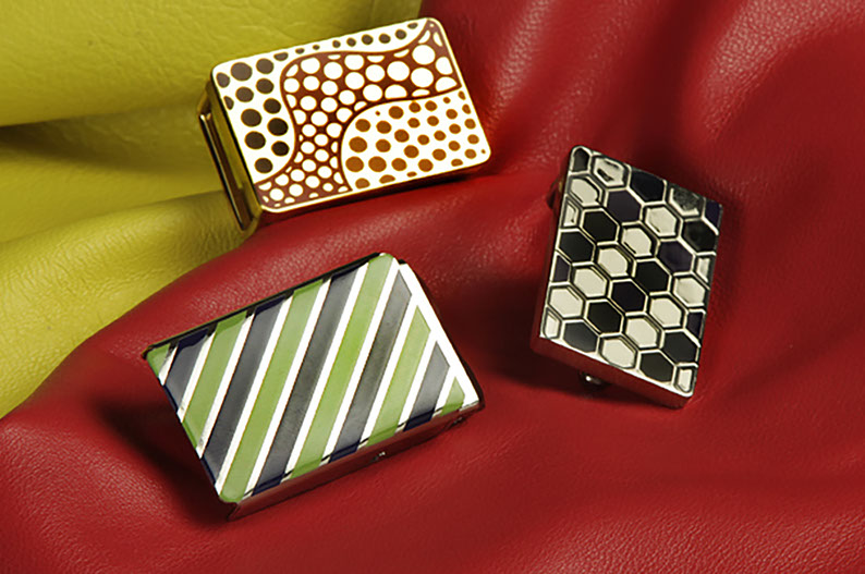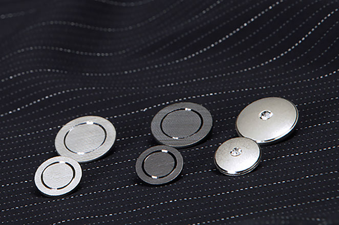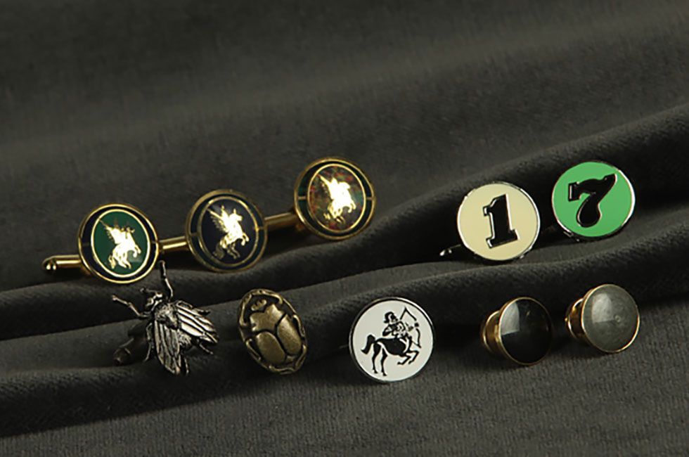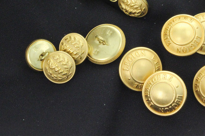 Buttons enriched with enamels and strass or electroplated with precious metals.